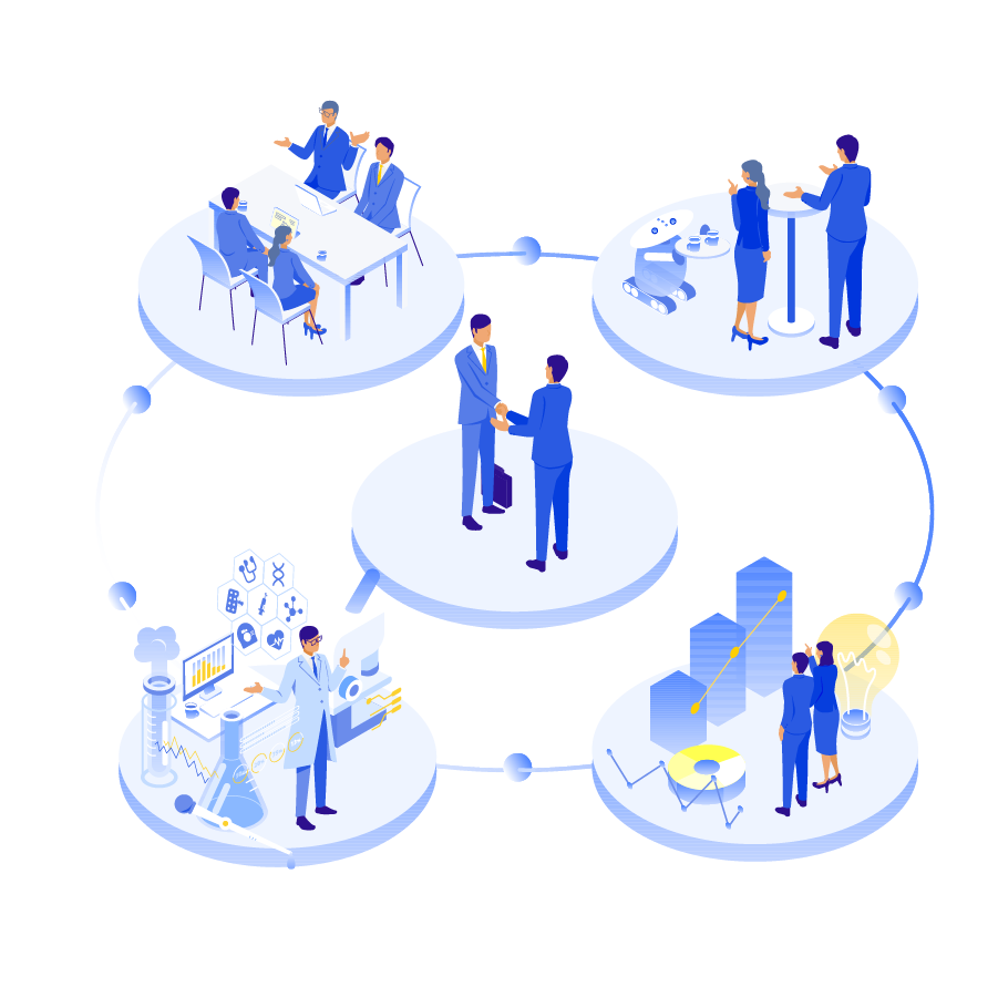 講師や受講生同士の交流を通じ、実用化に不可欠なパートナー探索や、研修後も継続的に専門家へ相談できる強固なネットワークを構築します。